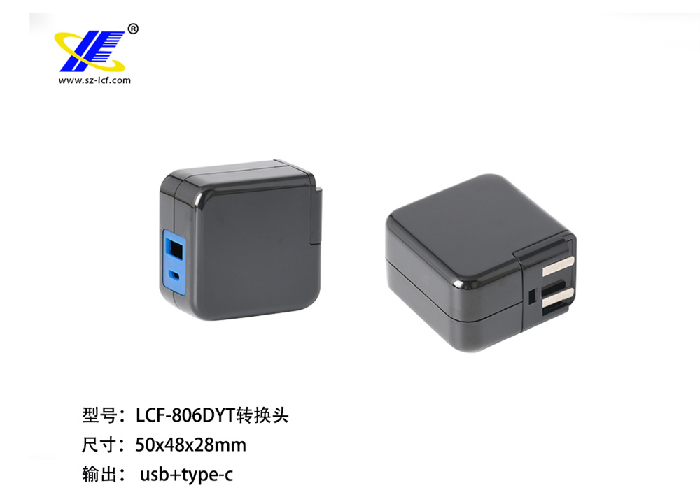 產品名稱: 10W轉換頭外殼型號:LCF-806DYT規格:68x50x30mm規格頭:中規、美規、歐規、澳規、英規、韓規SR尺寸 : USB/TYPE-C焊接方式:超聲波材料:PC環保(ABS、PC+ABS、PC)顏色:黑/白燈孔: 無燈防火級別:V1耐溫:120度環保認證:符合ROHS認證